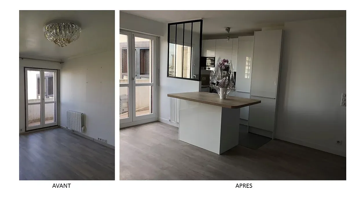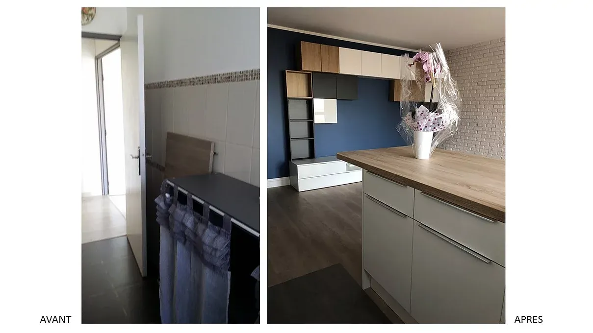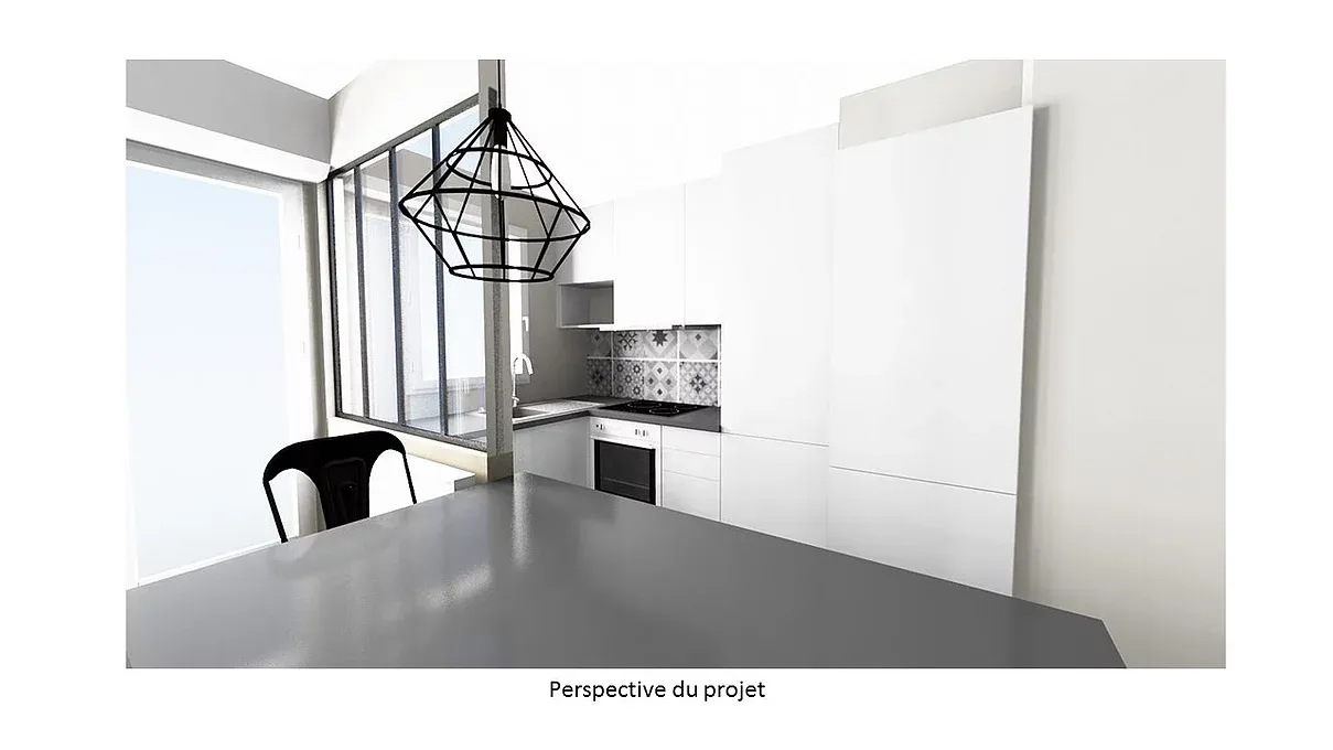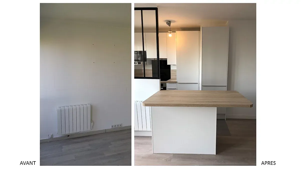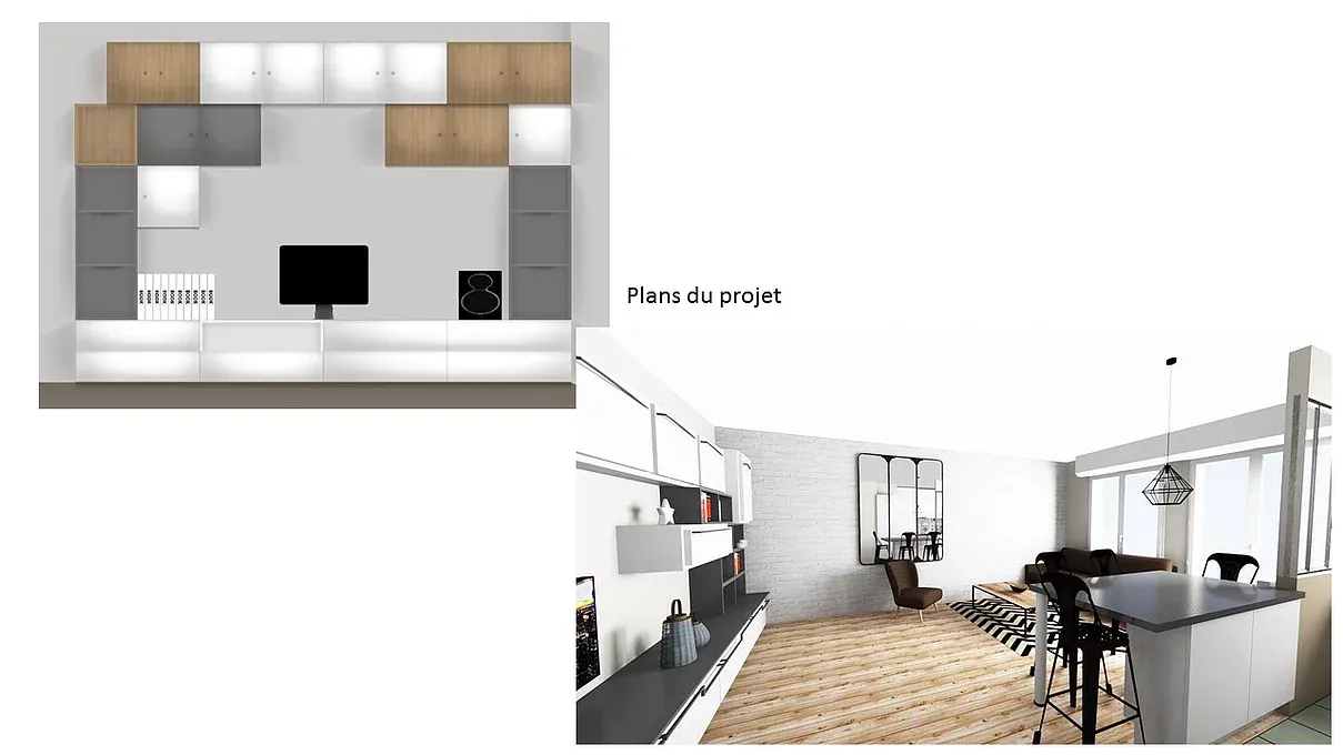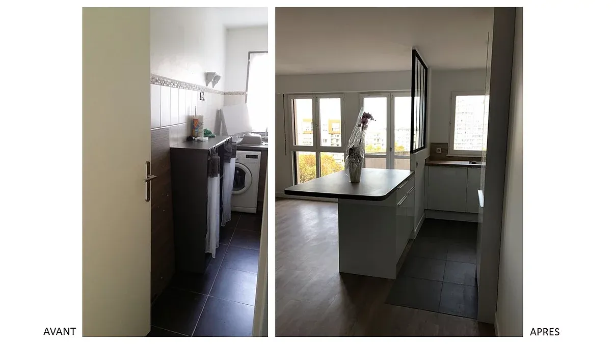 Le client souhaitait une cuisine ouverte totale ou partiellement afin de gagner en espace de rangement et avoir plus de lumière. Côté déco, il avait envie d’imprimer une touche « industrielle » à l’ensemble de la décoration.