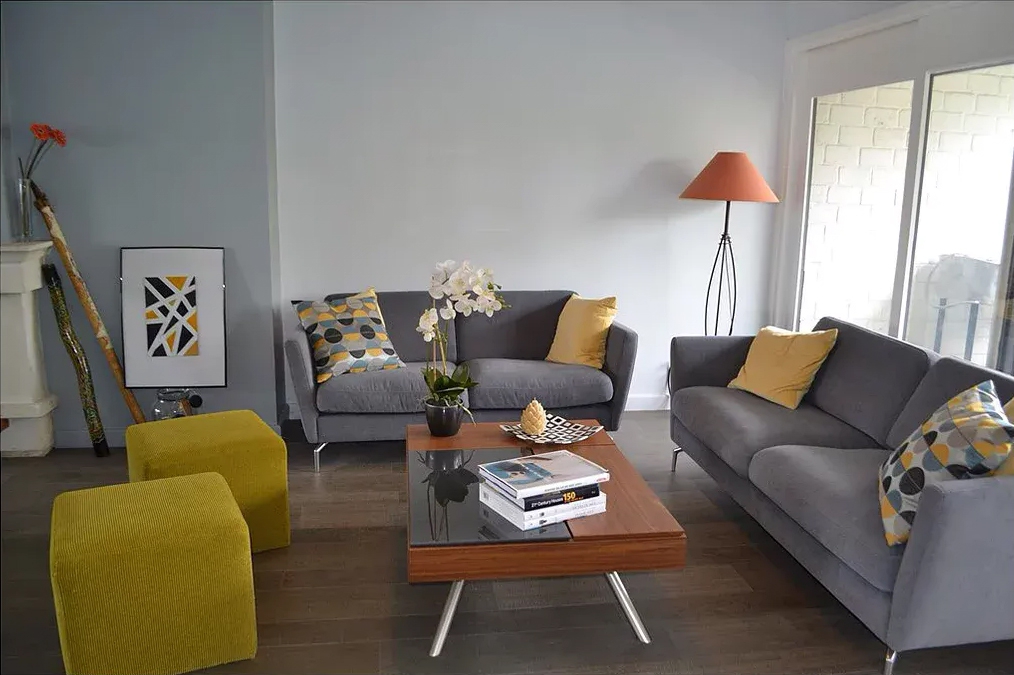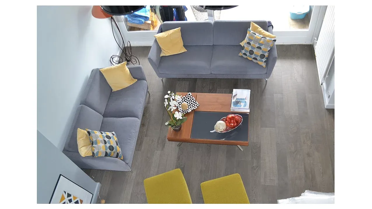- La mezzanine a été réaménagée avec du mobilier existant du client et transformé en salon de TV.