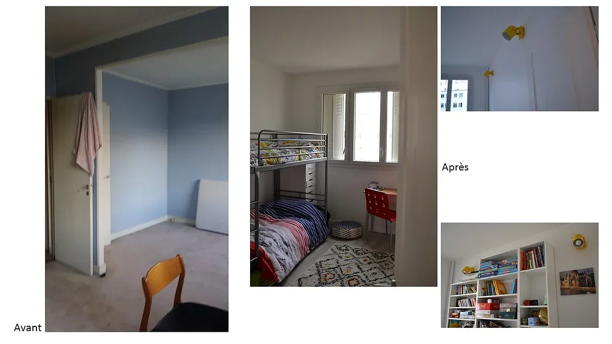 La grande surface de la seule chambre avec une cloison a pu abriter la deuxième, recouvrant ainsi sa configuration d’origine. L’accès à la deuxième chambre a été replacé et un faux plafond dans cette zone a permis de dessiner les fonctions, tout en éliminant des cloisons qui ajoutaient des couloirs inutiles et renfermaient les espaces.
