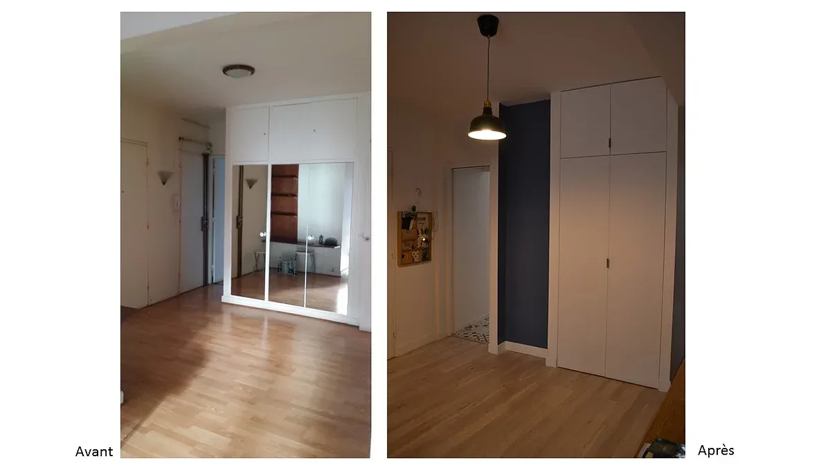 L’entrée a été optimisée avec des rangements tout en conservant un espace ample et agréable.