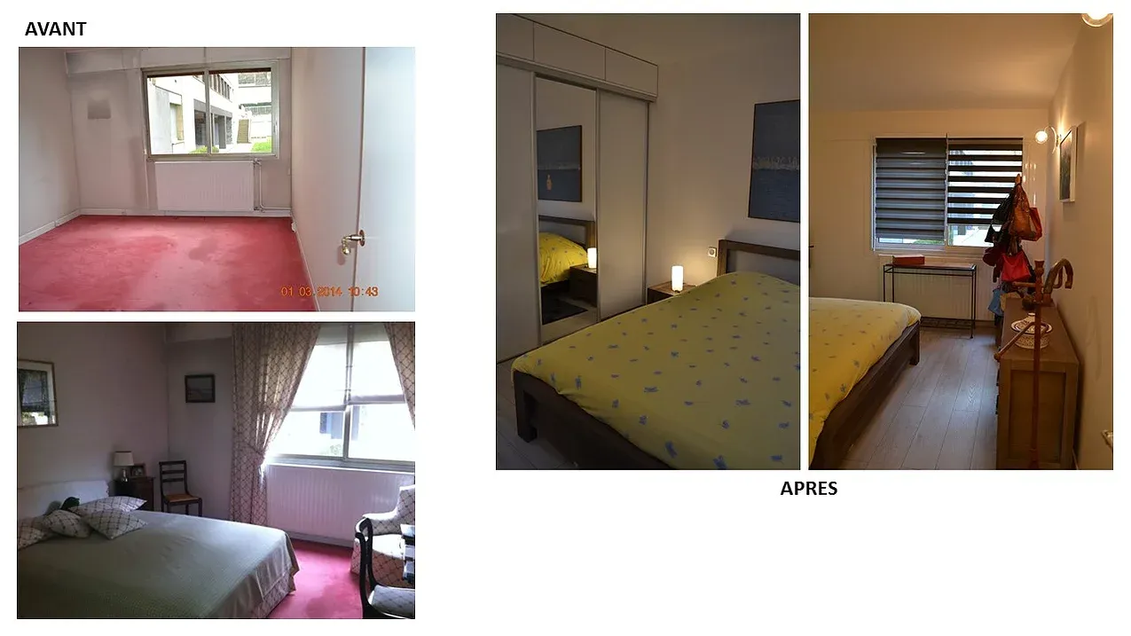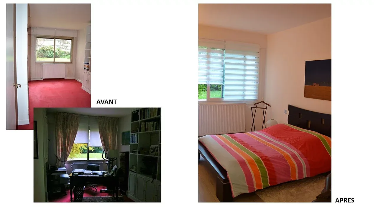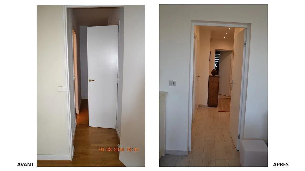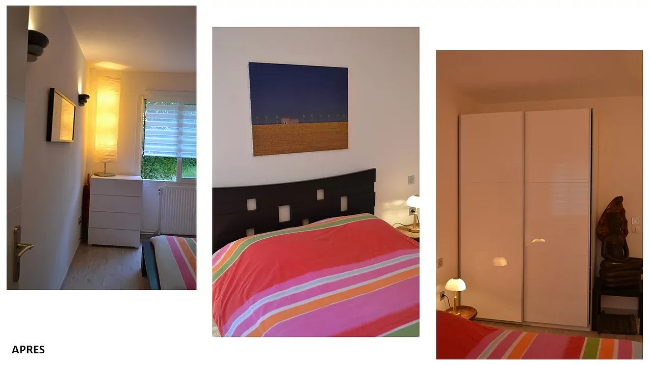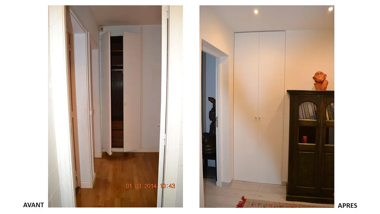 - Le dressing agrandi et son accès modifié. La porte avant ouvrante a été remplacée par une coulissante.