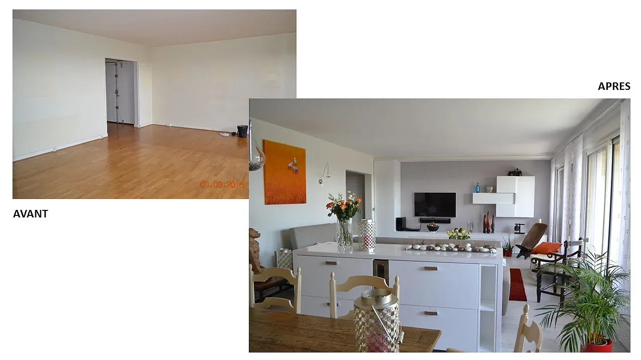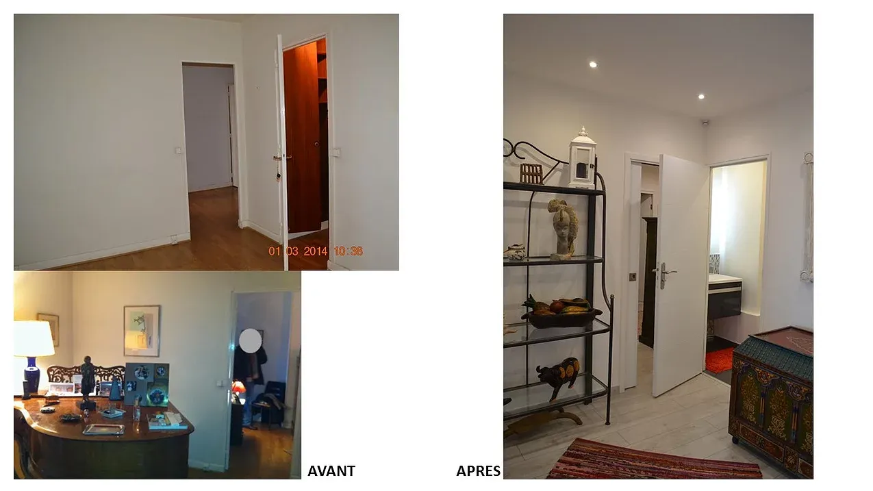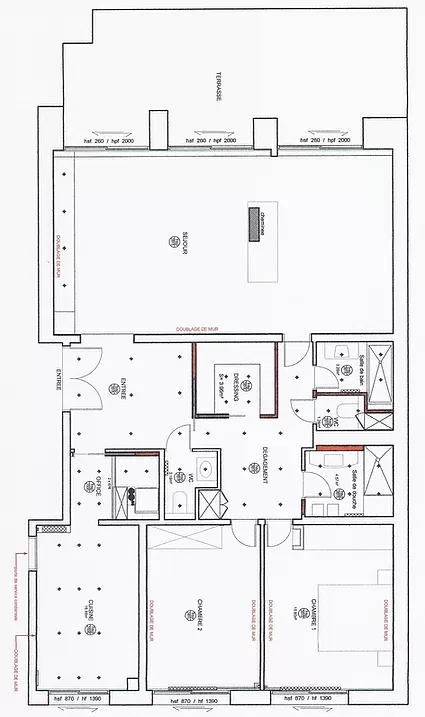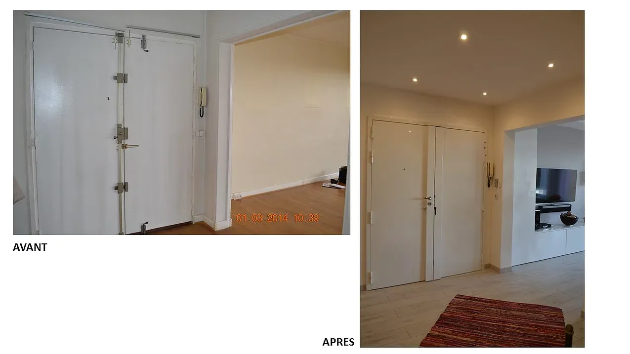 - Création d'un faux plafond pour: l'entrée, toilettes, salles de douche et salle de bains, dégagement, cuisine, office puis un faux plafond partiel sur le meuble TV du séjour.
