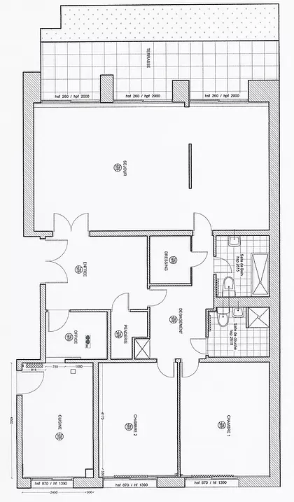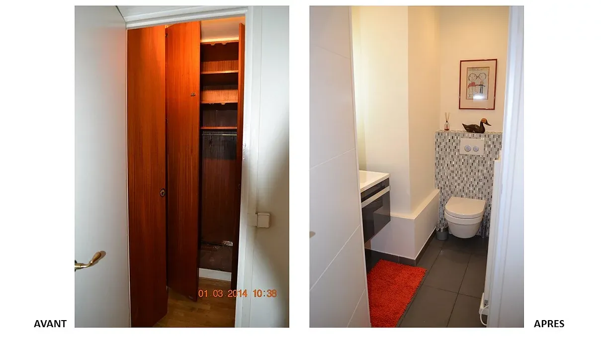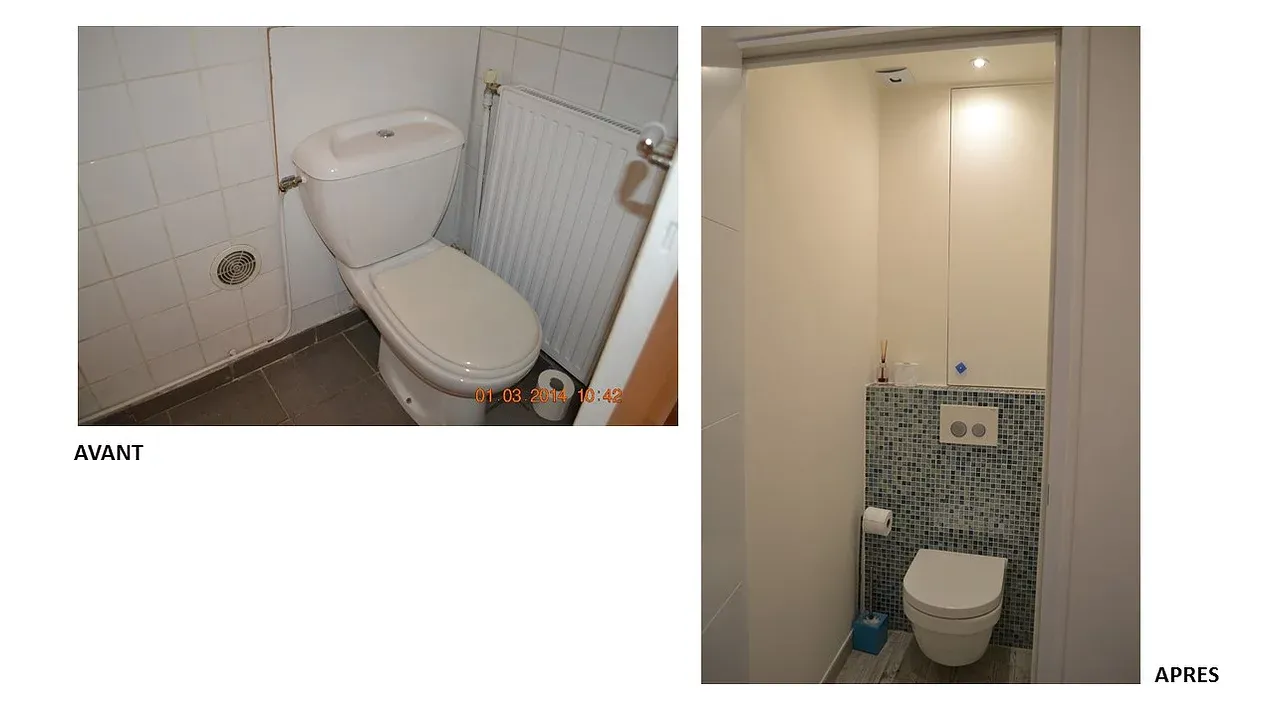 - Le WC, avant dans les salles d'eau a été séparé dans une pièce à part.