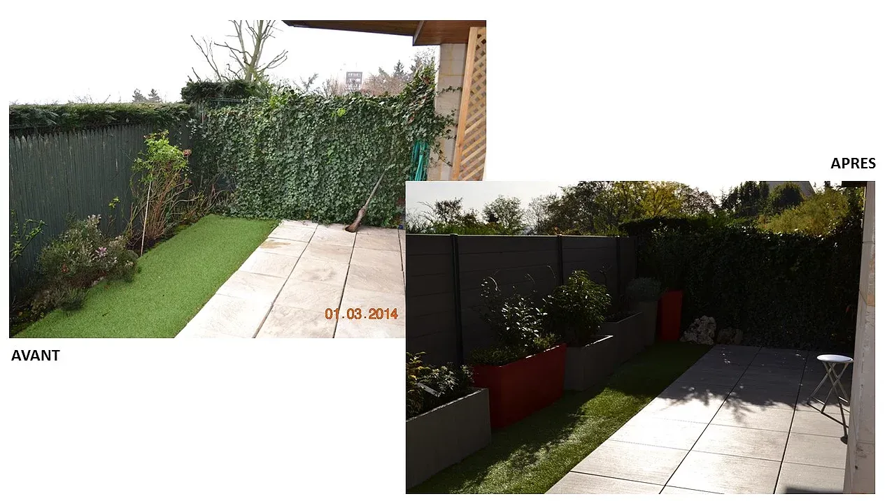 - La terrasse complètement refaite: carrelage, gazon, clôture et spots à chaque porte- fenêtre.