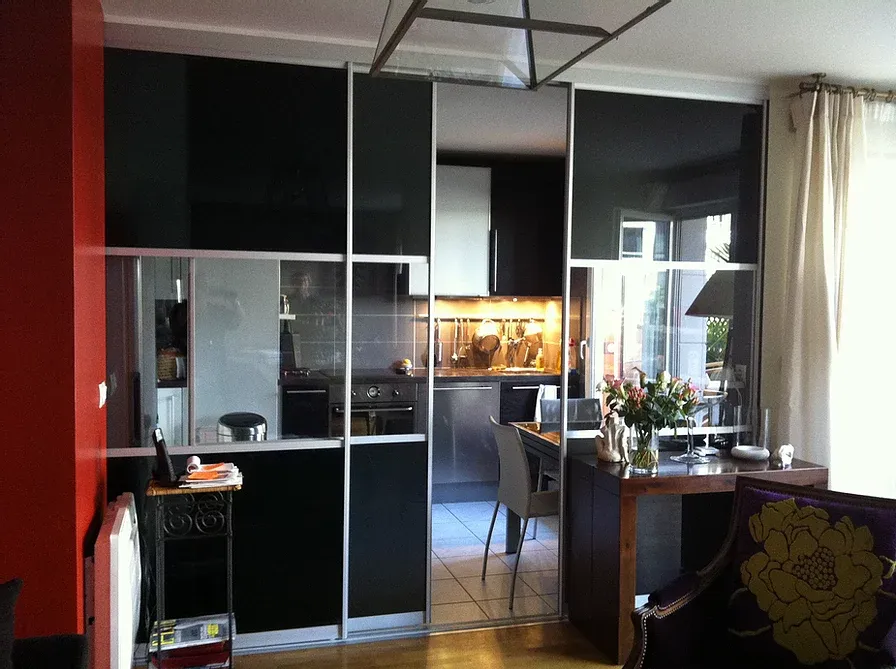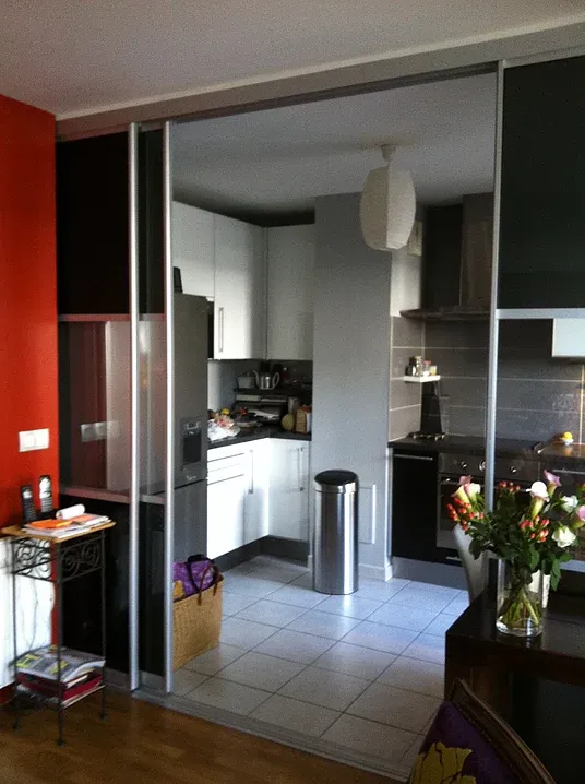 2) Fermer cette pièce avec des portes coulissantes qui permettent de jongler entre espace ouvert et fermé.