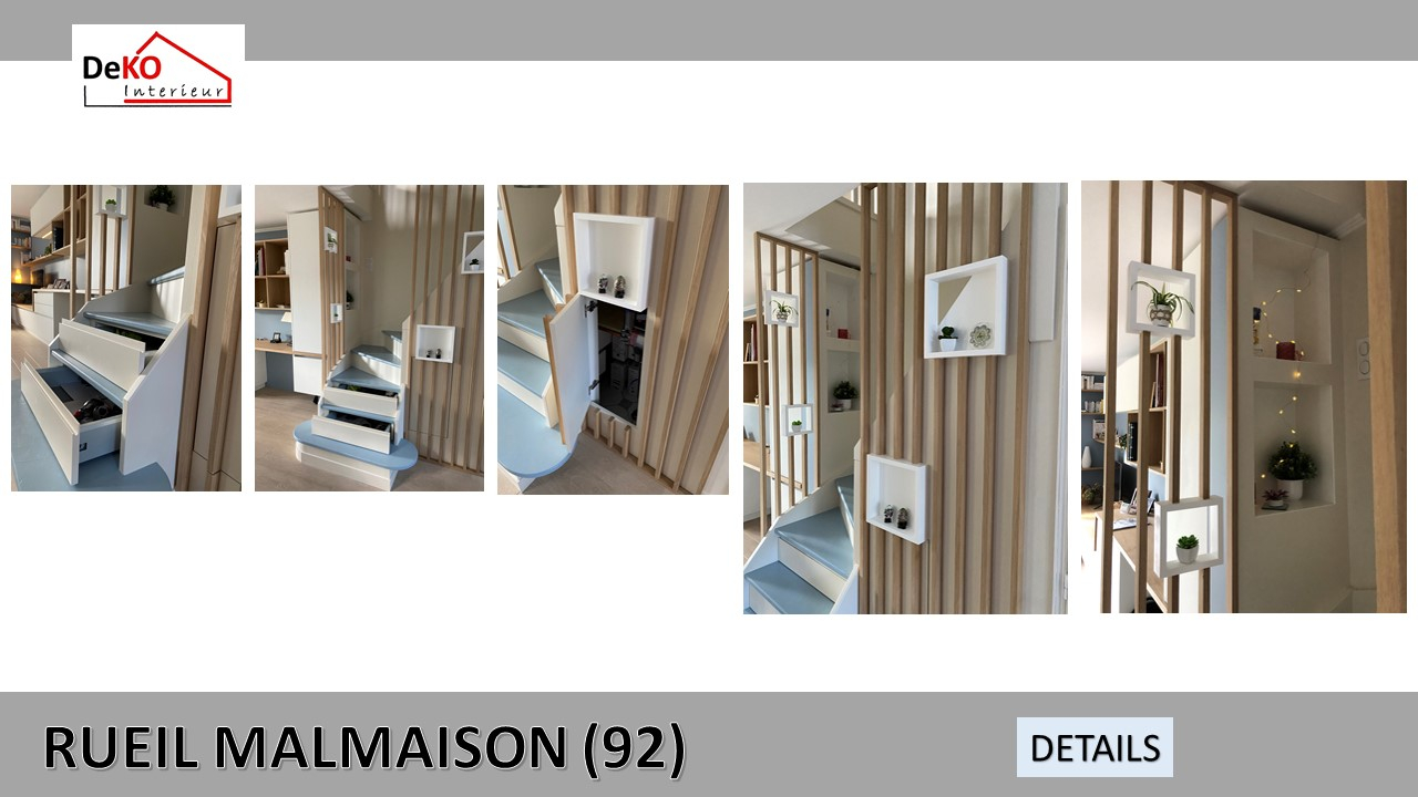 De plus, nous avons maximisé l'utilisation de l'espace en ajoutant des rangements pratiques sous les marches de l'escalier, offrant ainsi une solution de rangement supplémentaire tout en optimisant l'espace disponible.