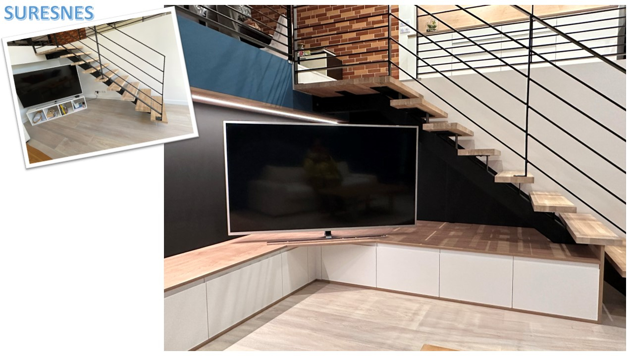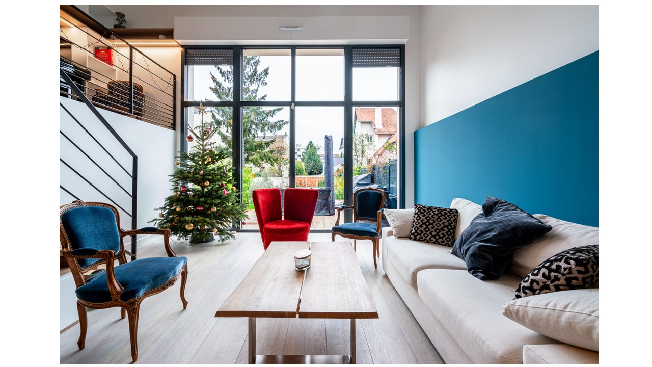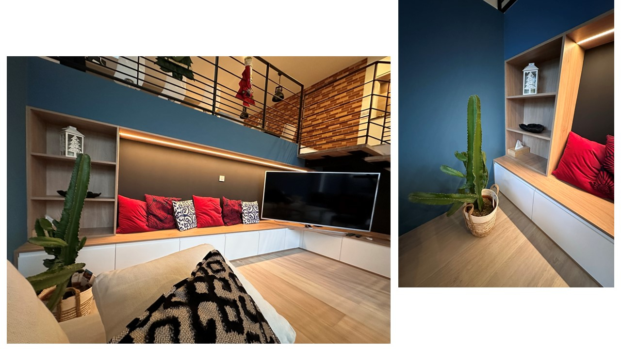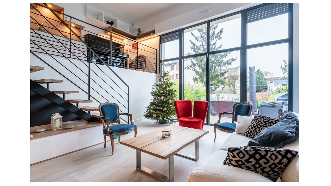 Dans cette nouvelle maison, le séjour manquait cruellement d'âme. Son vaste volume rendait difficile son aménagement optimal. En intervenant, j'ai choisi de renverser la donne : positionner le canapé face à l'escalier, transformant ainsi cet espace en un accueil chaleureux dès l'entrée, tout en dissimulant discrètement la télévision sous l'escalier. L'utilisation de meubles du commerce a permis de créer un banc accueillant, offrant également un espace de rangement et une bibliothèque, avec des jeux de couleurs pour délimiter et distinguer les espaces. Quant au coin piano /bibliothèque, initialement était un couloir vide, il a été métamorphosé par l'ajout d'une bibliothèque fonctionnelle et cosy et d'un buffet attenant à la salle à manger, apportant ainsi élégance et luminosité à cet espace autrefois délaissé. Découvrez comment chaque choix a été pensé pour donner vie et caractère à ce séjour.