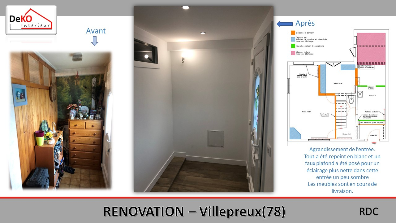 L'intervention a débuté par une révision de l'entrée, désormais redessinée pour accueillir un espace de mobilier et de rangement fonctionnel.