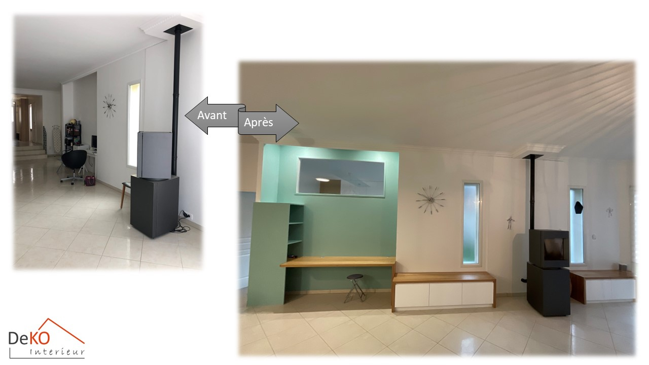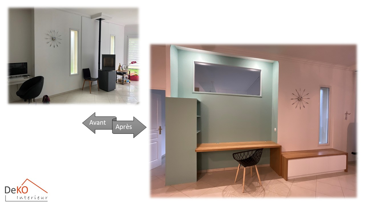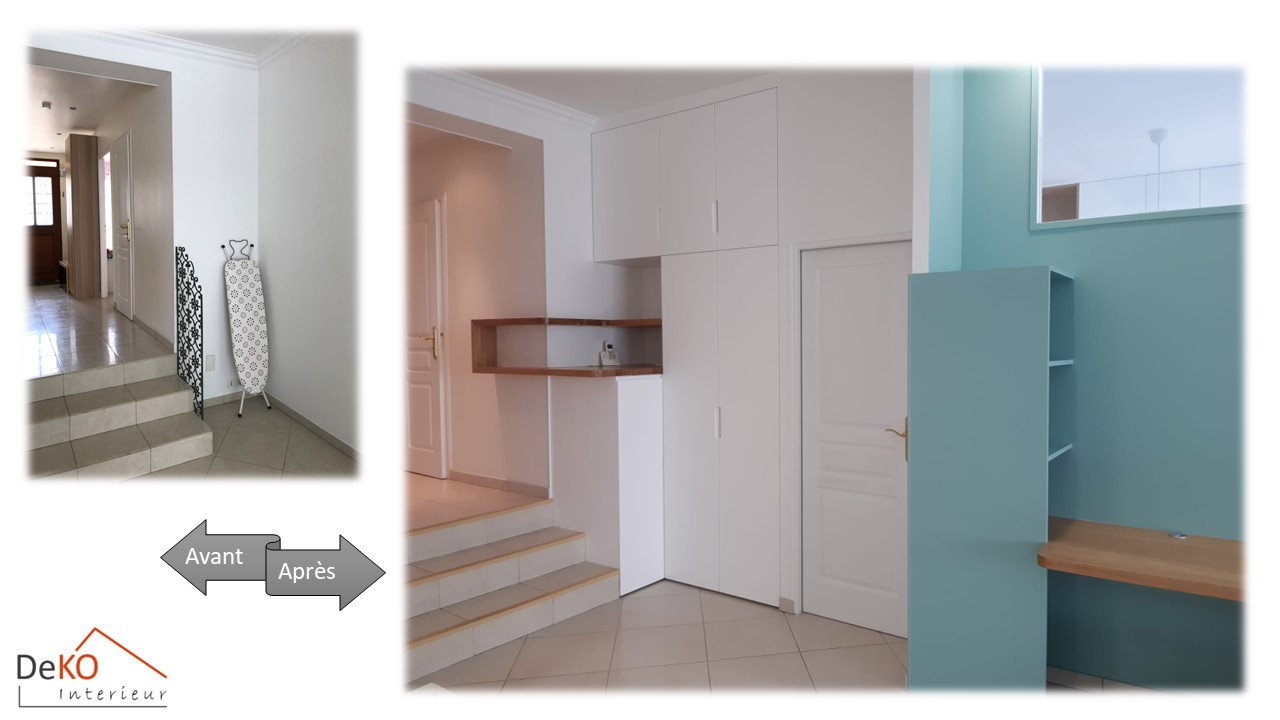 En outre, juste à droite des petites marches menant au séjour, un espace précédemment inutilisé a été repensé pour offrir une fonctionnalité optimale.