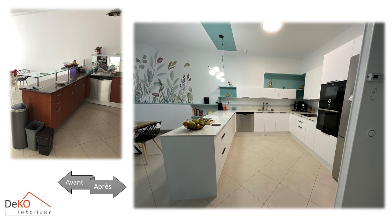 Avec le changement de couleurs cette cuisine a été transformée pour rayonner de luminosité et de modernité en plus d’avoir réglé le problème de certains meubles peu fonctionnels.