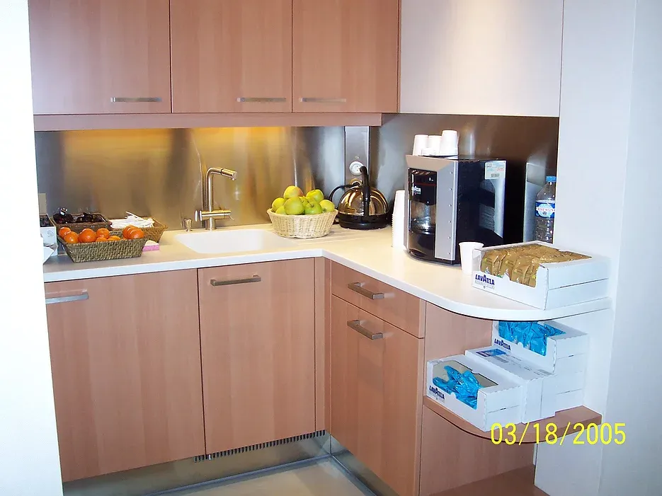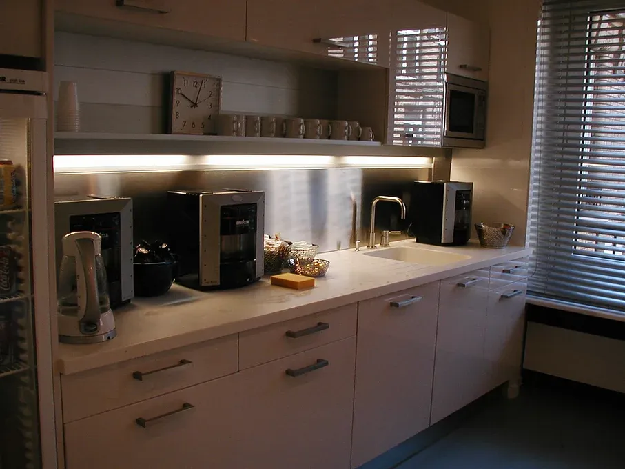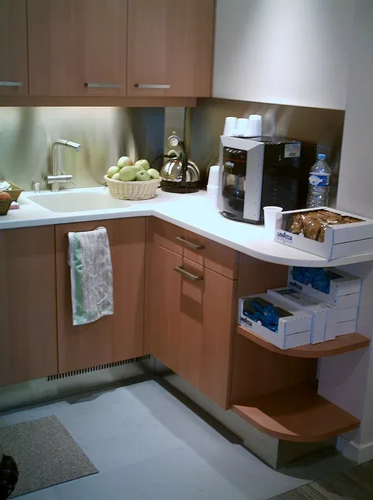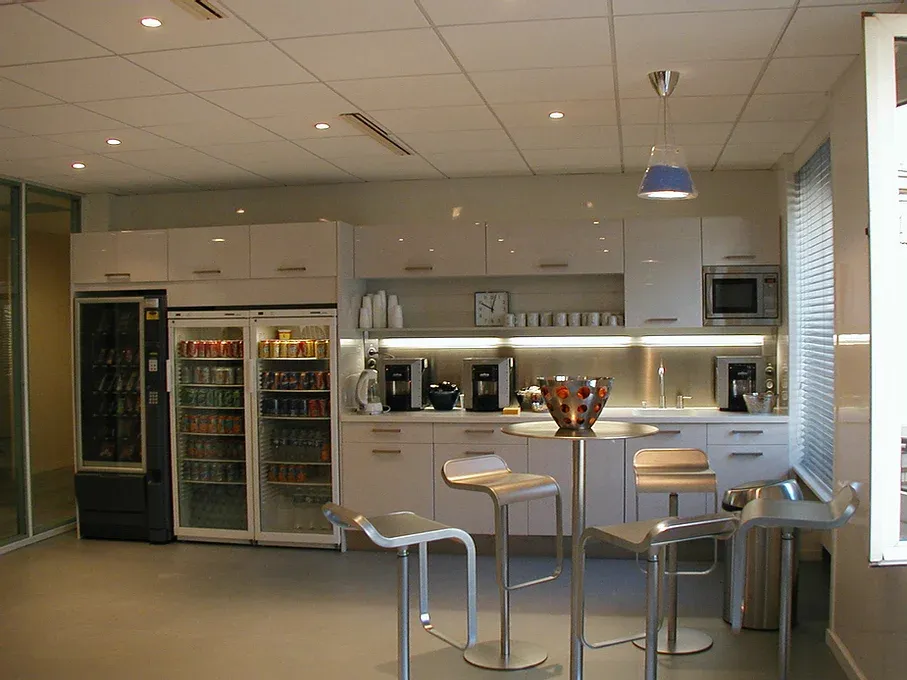 Réalisation du nouveau mobilier de cet espace détente d'un bureau