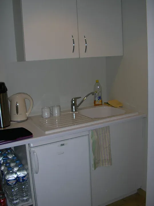 Porte en stratifié et plan de travail en Corian avec une cuve intégré.